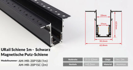 Diese 1m Schiene in Schwarz ist die Putzschiene aus der URail Serie. Zusammen mit weiteren Komponenten gestalten Sie Ihr individuelles URail Schienensystem. Das System ist für den Betrieb von LED Schienenleuchten geeignet.