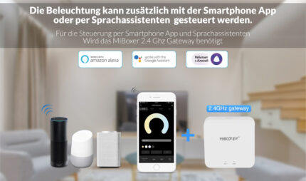 Neben der unkomplizierten Montage bietet er flexible Farb- und Weißlichtsteuerung, Synchronisation mehrerer Geräte und Bedienung über Funk-Fernbedienung (2,4 GHz), App oder Sprachsteuerung*. Ideal für Design-Beleuchtung, Ambiente und smarte Lichtlösungen.