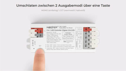 - 2-in-1-Modus (MONO / CCT): Ein Controller für alles: mit nur einem Gerät steuern Sie jede Art von MONO, CCT-LED-Streifen.
