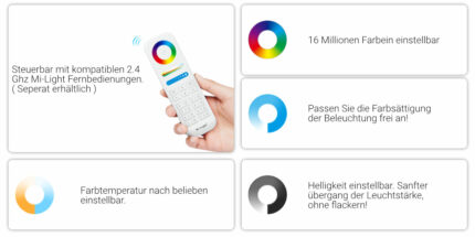 *** Für dynamische Modi ist eine 2,4 GHz Fernbedienung erforderlich – im Shop erhältlich.