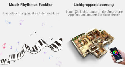 - Flexible Steuerung: WLAN, 2,4 GHz Funk oder Bluetooth 4.2: Bedienen Sie Ihr Licht per Tuya Smart App, Fernbedienung oder Sprachassistent.