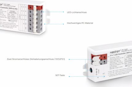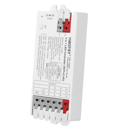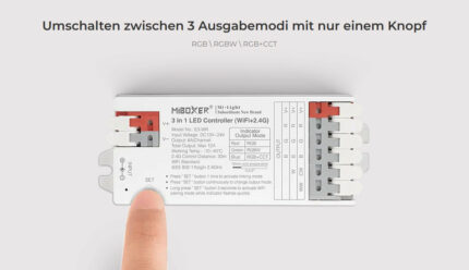 Der MiBoxer E3-WR begeistert als leistungsstarker 3-in-1 LED-Controller für RGB, RGBW und RGB+CCT. Seine cleveren Push-Klemmen machen die Montage kinderleicht, während WLAN, 2,4 GHz-Funk, Bluetooth, App- und Sprachsteuerung Ihnen volle Flexibilität bieten.
