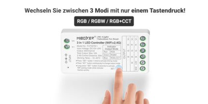 Der MiBoxer FUT037W+ LED-Controller verbindet drei Steuerungsmodi in einem Gerät: RGB, RGBW und RGB-CCT.