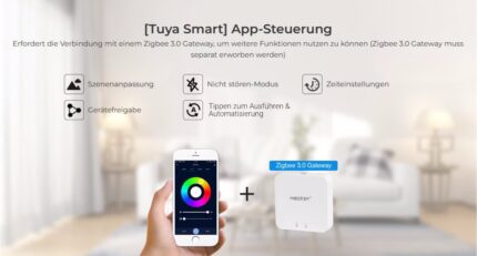 - Smarthome-Kompatibilität: Steuern Sie Ihr Licht komfortabel über die Tuya Smart App*, per Alexa* oder Google Home* – oder integrieren Sie den Controller ganz einfach in Ihr Zigbee-Netzwerk.