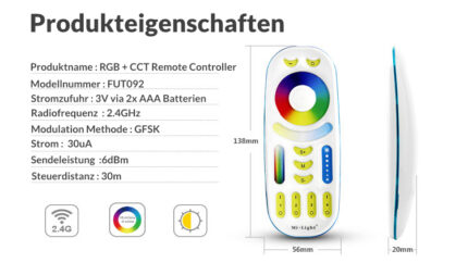 | Produktname: | 4-Zonen-RGB+CCT-Fernbedienung |