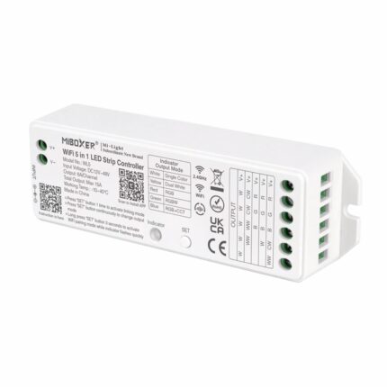 Erleben Sie mit dem MiBoxer WL5 Controller smarte Lichtsteuerung auf neuem Niveau: Ob einfarbiges LED-Licht, warm-kühles Weiß, RGB-Farben oder Mischformen wie RGBW und RGB-CCT – dieser 5-in-1 Controller macht alles mit.