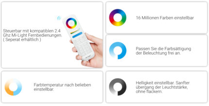 Geeignet für MONO, CCT, RGB, RGBW und RGB-CCT LEDs
