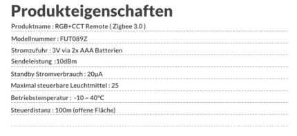 | Produktname: | 7-Zonen-RGB+CCT-Zigbee-Fernbedienung |
