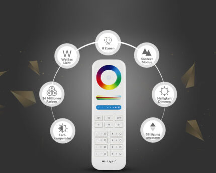 Die 2,4 GHz MiBoxer Fernbedienung bietet Ihnen volle Kontrolle über Ihre RGB+CCT LED-Controller – für ein intelligentes, flexibles und komfortables Smart Home-Erlebnis.