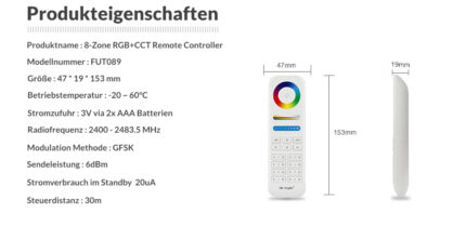 MiBoxer FUT089 – 8-Zonen-Fernbedienung für RGB+CCT LED-Streifen
