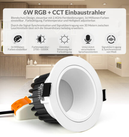 Kleiner 6W RGB + CCT LED Einbaustrahler