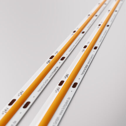 Der Streifen verwendet hochwertige COB-Technologie, die einen behaglichen, warmen Weißton mit einer Farbtemperatur von 2700 Kelvin erzeugt. Mit 480 LEDs pro Meter bietet er eine gleichmäßige und kräftige Beleuchtung, die sich ideal für professionelle Anwendungen eignet. Er ist in verschiedenen Längen und mit einer Schutzart von bis zu IP68 verfügbar, was ihn sowohl für Innen- als auch für Außenanwendungen geeignet macht. Mit einer Leistung von 10 W pro Meter und einem hohen Lichtwiedergabeindex von (CRI > 90) ermöglicht der Streifen eine natürliche Lichtdarstellung.