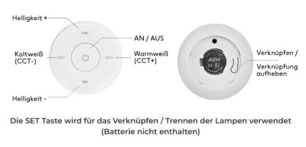 Die Steuerung arbeitet zuverlässig mit bis zu 30 Metern Funkreichweite (je nach Umgebung) und nutzt die energieeffiziente Übertragung mit geringer Standby-Leistung. Der Betrieb erfolgt über eine einfache Knopfzelle (CR2032). Dank magnetischer Halterung montieren Sie die Einheit schnell an der Wand oder nehmen sie bei Bedarf einfach heraus. Ob Schwarz oder Weiß – das schlanke Gehäuse fügt sich stilvoll in moderne Lichtkonzepte ein.