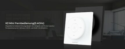Mit dem MiBoxer K2-Drehschalter können Sie kompatible MiBoxer Lampen und Leuchtmittel ganz einfach dimmen und die Farbtemperatur (falls unterstützt) regeln. Das Gehäuse ist in Schwarz oder Weiß erhältlich und kann als wandmontierter Drehdimmer mit Magnethalter oder als tragbare Fernbedienung genutzt werden – für maximale Flexibilität bei der Platzierung Ihres CCT-Weißton-Dimmers.