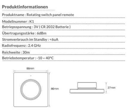 Der Dreh-Wandschalter & Fernbedienung K1 auf einem Blick