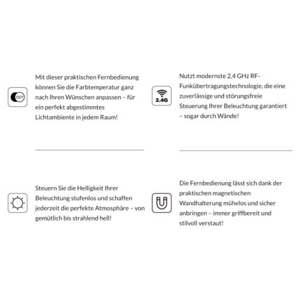 - Zuverlässige Funkverbindung (2,4 GHz) mit großer Reichweite: Funkübertragung mit bis zu 30 m Reichweite (auch durch Wände), sorgt für bequeme Steuerung ohne Sichtverbindung.