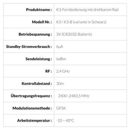 Der Wandschalter & Mini-Fernbedienung K3 auf einem Blick