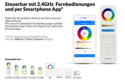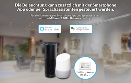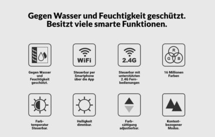 Mit einer passenden Fernbedienung können Sie den Strahler dimmen, die Farbtemperatur wechseln und die Sättigung sowie die Farben einstellen. Mit Hilfe der WL-Box1 können Sie die Lampe nicht nur per Fernbedienung steuern, sondern auch über die App oder per Sprachsteuerung (z.B. Alexa und Google Home). Ein entsprechendes Netzteil mit einer Eingangsspannung von 100 bis 240 Volt ist bereits in dem Gerät integriert. Daher können Sie das gerät einfach in Ihren Stromanschluss integrieren.
