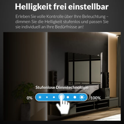 - Vielseitige Farbauswahl & Weißlichtsteuerung: Mit dem Farbkreis lassen sich bis zu 16 Millionen Farben einstellen, zusätzlich kann die Farbtemperatur im Weißlichtbereich von ca. 2.700 K bis 6.500 K geregelt werden.
