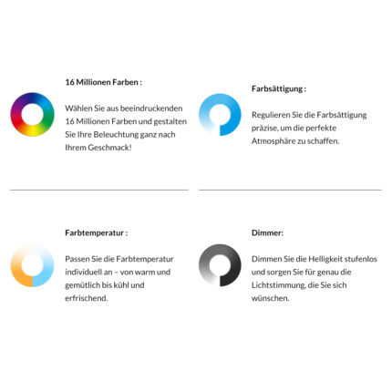 Farben, Farbtempertaur, Sättigung und Dimmung einstellbar