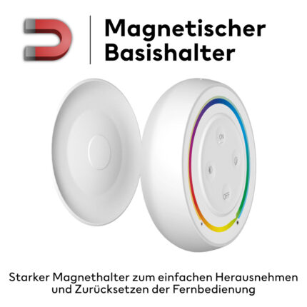 - Flexible Montage & Handbedienung: Wird an Magnethalter (an Wand klebbar oder schraubbar) befestigt, lässt sich leicht entnehmen und als Fernbedienung nutzen.