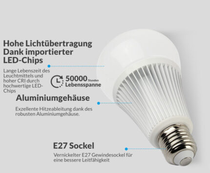 - E27-Sockel: Einfacher Austausch gegen herkömmliche Glühbirnen
