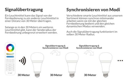 Die FUT012 verbindet klassisches Weißlicht (CCT) mit RGB-Farben in einer einzigen smart steuerbaren LED-Birne. Sie bietet sowohl funktionale Allgemeinbeleuchtung als auch stimmungsvolle, farbige Lichtakzente – steuerbar per Funk, *App oder *Sprachassistent.