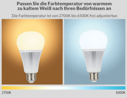 - 9 W RGB+CCT LED-Lampe: Farblicht und Weißlicht von 2700–6500 K