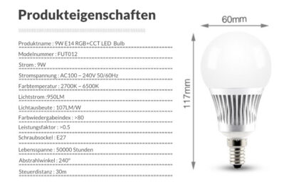 | Produktname: | 9W RGB+CCT-LED-Lampe (2,4G) |