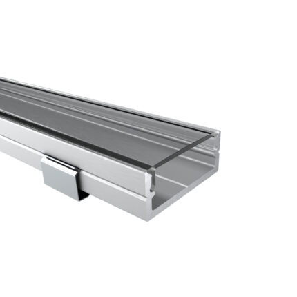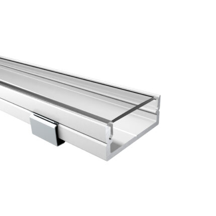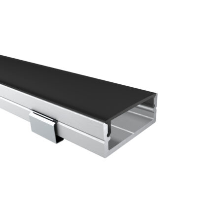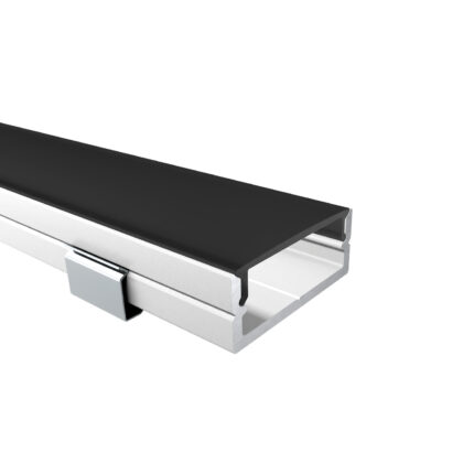 Das Aufputzprofil BILLE aus Aluminium ist in drei Farben erhältlich: Eloxiert, Weiß und Schwarz. Es ist perfekt für LED-Streifen bis 20 mm geeignet. Mit 24 mm Breite, 10 mm Höhe und Längen bis zu 300 cm ( 301 cm – 600 cm auf Anfrage ) eignet es sich ideal für flächenbündige Installationen. Die Abdeckungen aus Polycarbonat sind in vier Varianten verfügbar: Schwarz mit 50 % Lichtdurchlässigkeit, Opal mit 67 % Lichtdurchlässigkeit, Semi mit 85 % Lichtdurchlässigkeit und Klar mit 95 % Lichtdurchlässigkeit. Zusätzlich runden Endkappen aus ABS-Plastik das Profil ab – die perfekte Wahl für moderne Beleuchtungslösungen.