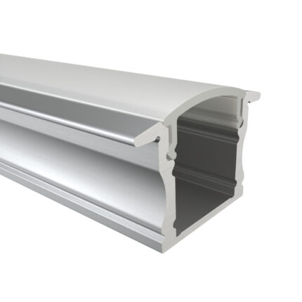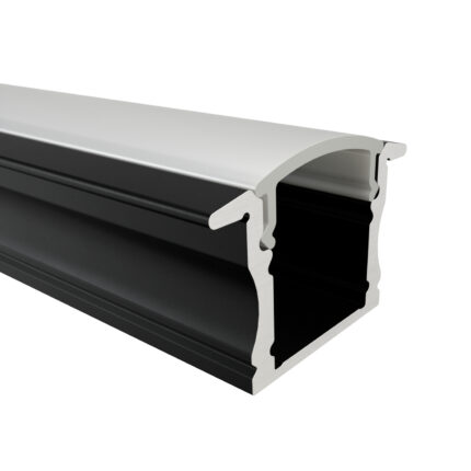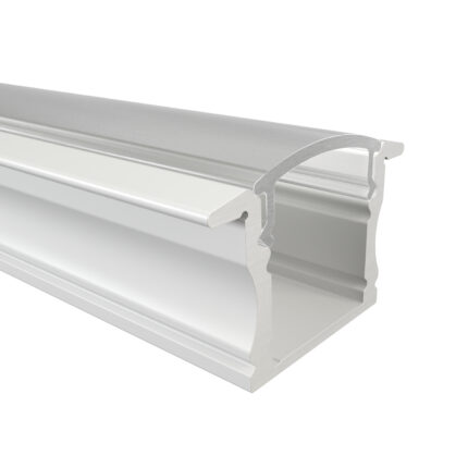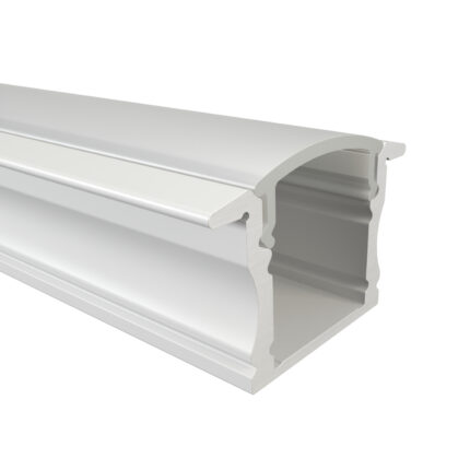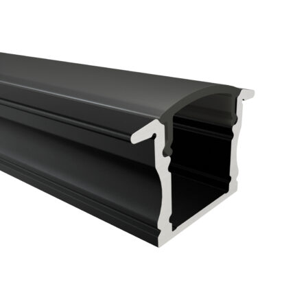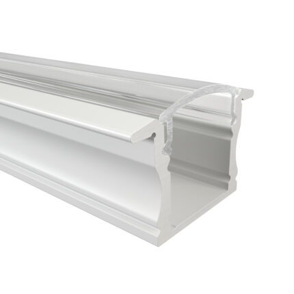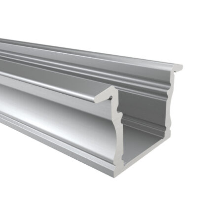 Das Einbauprofil MAIN aus Aluminium ist in drei Farben erhältlich: Eloxiert, Weiß und Schwarz. Es ist perfekt für LED-Streifen bis 12 mm geeignet. Mit 17 mm Breite (ohne Flügel, 23,2 mm mit), 14,6 mm Höhe und Längen bis zu 300 cm ( 301 cm – 600 cm auf Anfrage ) eignet es sich ideal für hochwertige einbauten und Installationen. Die Abdeckungen aus Polycarbonat sind in vier Varianten verfügbar: Schwarz mit 50 % Lichtdurchlässigkeit, Opal mit 67 % Lichtdurchlässigkeit, Semi mit 85 % Lichtdurchlässigkeit und Klar mit 95 % Lichtdurchlässigkeit. Zusätzlich runden Endkappen aus ABS-Plastik das Profil ab – die perfekte Wahl für moderne Beleuchtungslösungen.