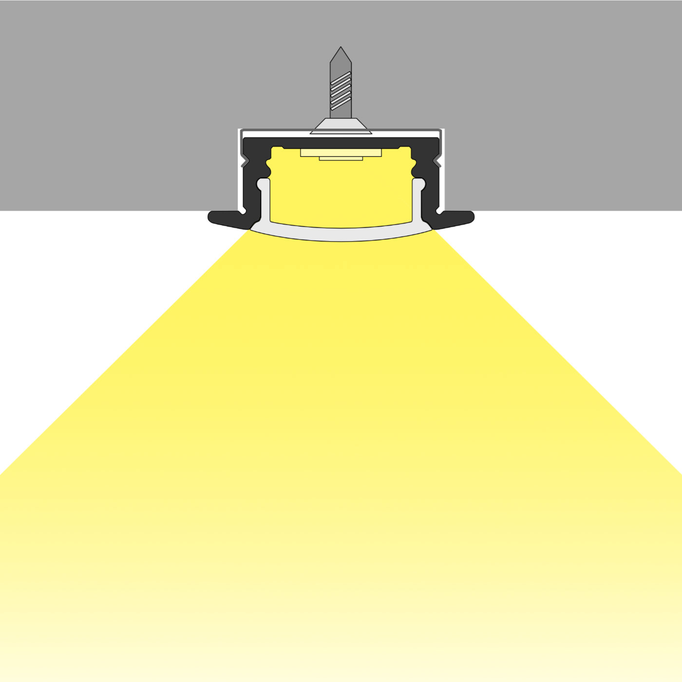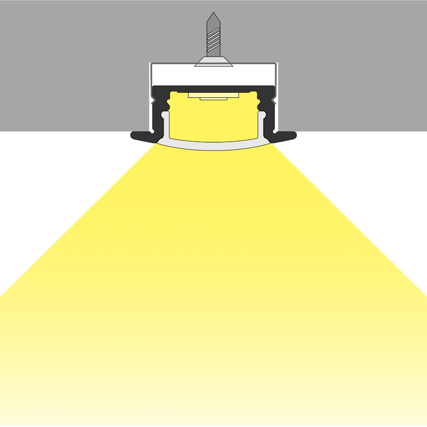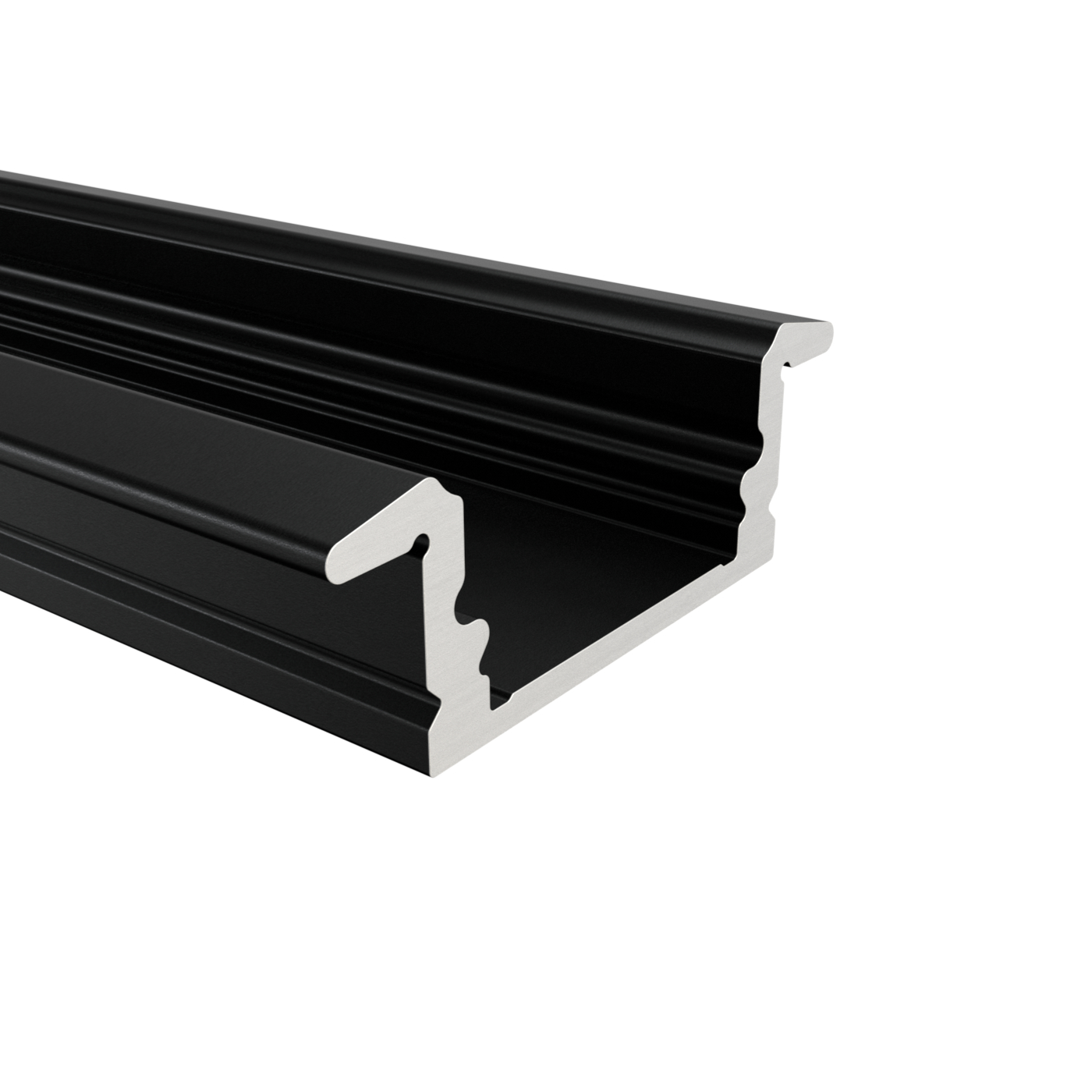 Das Einbauprofil EMS aus Aluminium ist in drei Farben erhältlich: Eloxiert, Weiß und Schwarz. Es ist perfekt für LED-Streifen bis 16 mm geeignet. Mit 21 mm Breite, 9 mm Höhe und Längen bis zu 300 cm ( 301 cm – 600 cm auf Anfrage ) eignet es sich ideal für flachbündige, hochwertige Installationen. Die Abdeckungen aus Polycarbonat sind in vier Varianten verfügbar: Schwarz mit 50 % Lichtdurchlässigkeit, Opal mit 67 % Lichtdurchlässigkeit, Semi mit 85 % Lichtdurchlässigkeit und Klar mit 95 % Lichtdurchlässigkeit. Zusätzlich runden Endkappen aus ABS-Plastik das Profil ab – die perfekte Wahl für moderne Beleuchtungslösungen.