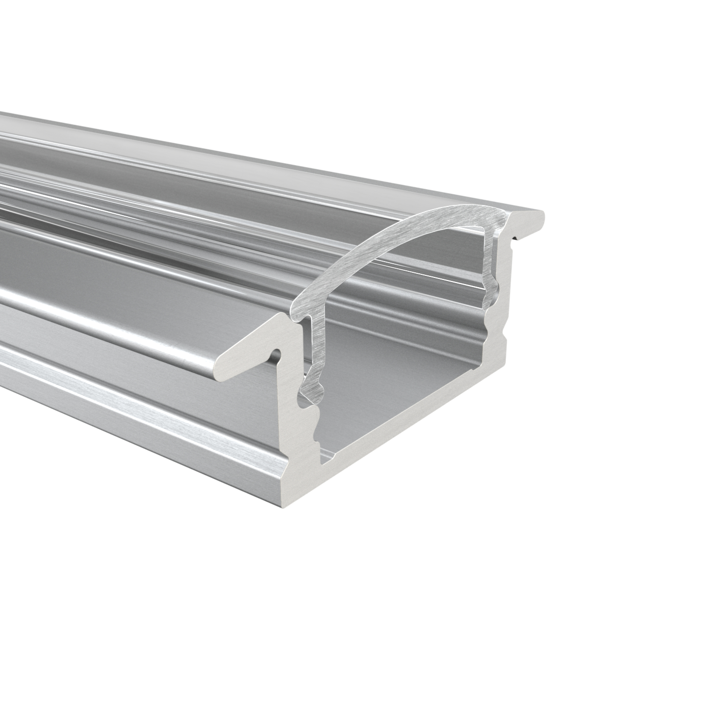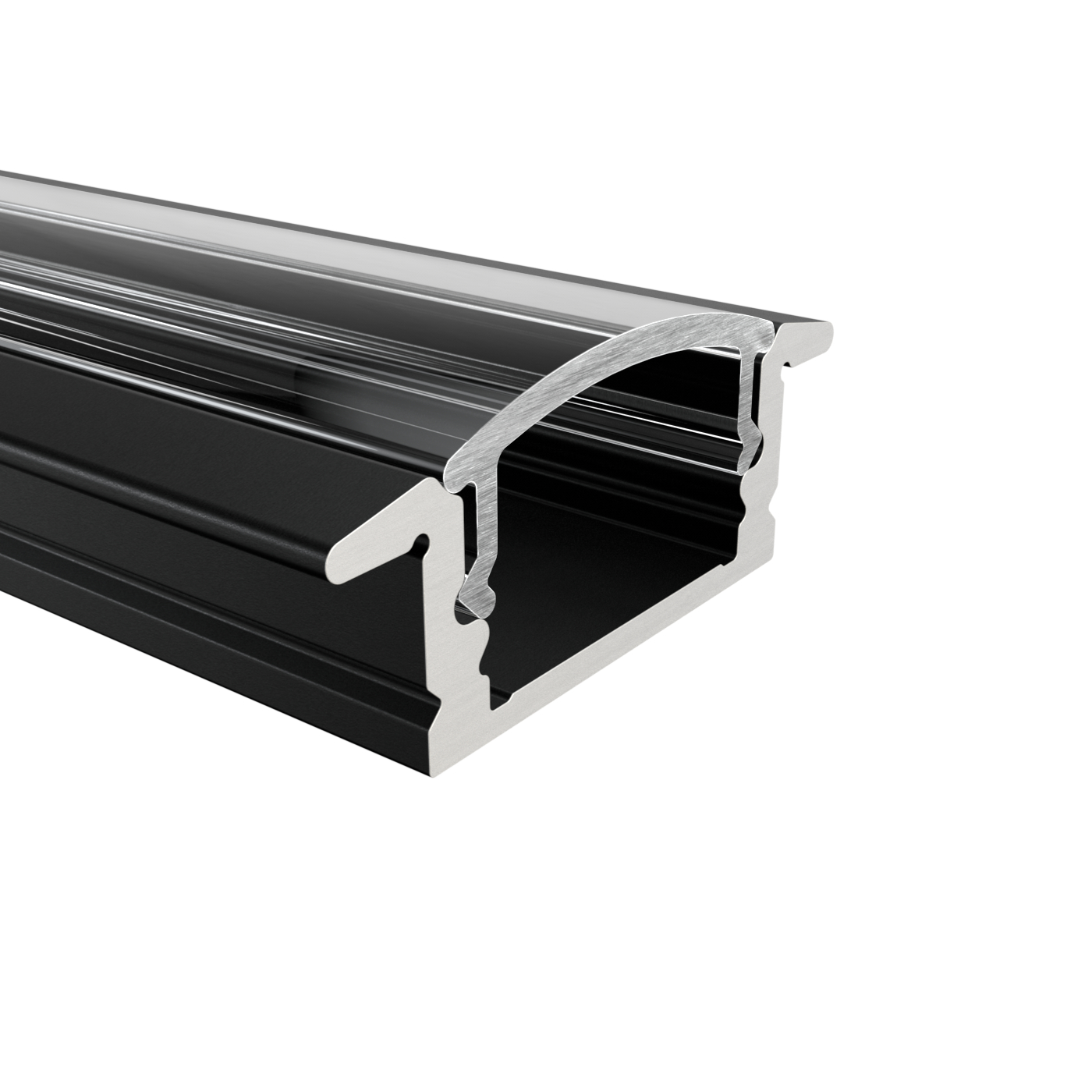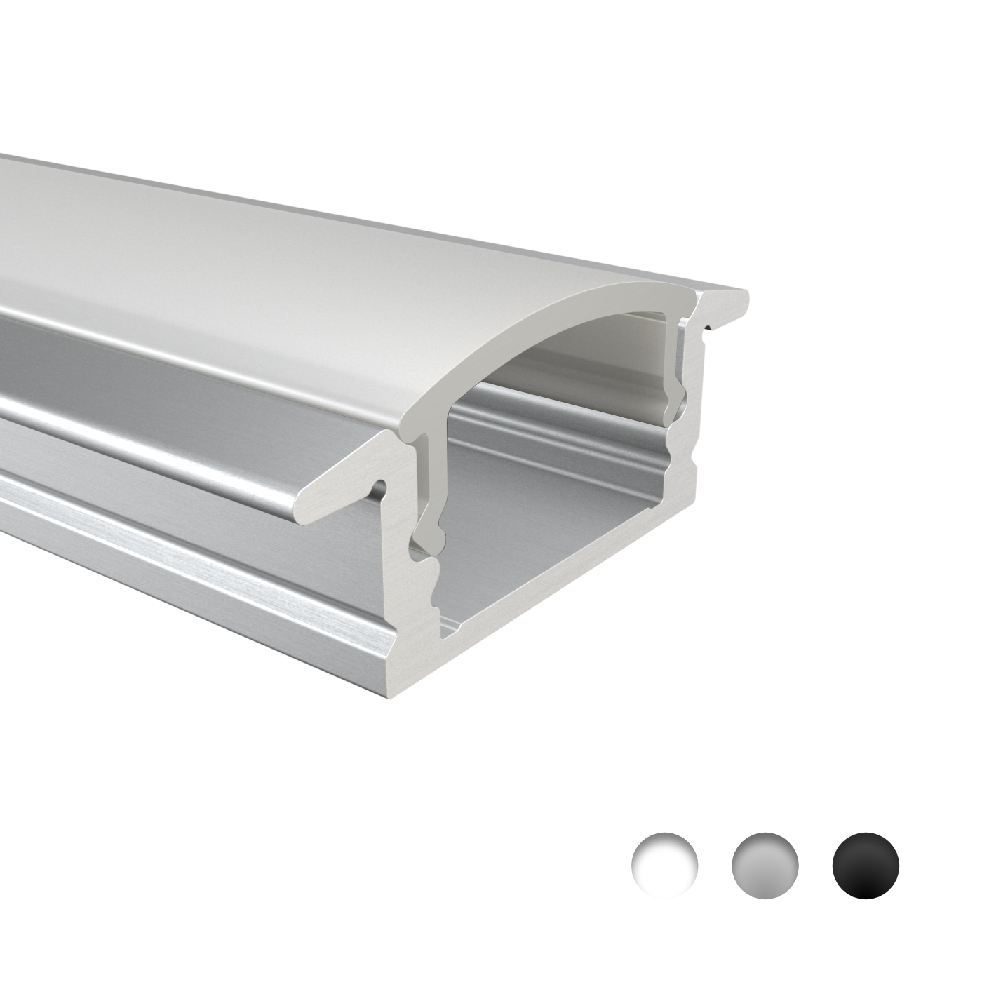 Das Einbauprofil EMS aus Aluminium ist in drei Farben erhältlich: Eloxiert, Weiß und Schwarz. Es ist perfekt für LED-Streifen bis 16 mm geeignet. Mit 21 mm Breite, 9 mm Höhe und Längen bis zu 300 cm ( 301 cm – 600 cm auf Anfrage ) eignet es sich ideal für flachbündige, hochwertige Installationen. Die Abdeckungen aus Polycarbonat sind in vier Varianten verfügbar: Schwarz mit 50 % Lichtdurchlässigkeit, Opal mit 67 % Lichtdurchlässigkeit, Semi mit 85 % Lichtdurchlässigkeit und Klar mit 95 % Lichtdurchlässigkeit. Zusätzlich runden Endkappen aus ABS-Plastik das Profil ab – die perfekte Wahl für moderne Beleuchtungslösungen.
