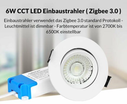 Mit einer passenden Fernbedienung können Sie den Strahler dimmen, die Farbtemperatur wechseln und die den Strahler dimmen. Die Steuerung erfolgt über Zigbee 3.0. Mit Hilfe der ZB-Box können Sie die Lampe nicht nur per Fernbedienung steuern, sondern auch über die App oder per Sprachsteuerung (z.B. Alexa und Google Home). Ein entsprechendes Netzteil mit einer Eingangsspannung von 100 bis 240 Volt ist bereits in dem Gerät integriert. Daher können Sie das gerät einfach in Ihren Stromanschluss integrieren.