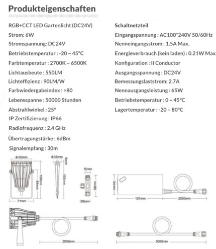 Die 6W RGB + CCT LED Garten Beleuchtung im Detail: