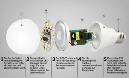 Je nach Bedarf kann die Steuerung allerdings auch per App oder Sprachsteuerung erfolgen. Dazu ist eine WL-Box 1 erforderlich. Der E27 Sockel kann durch einen E26 oder B22 Sockel ersetzt werden. Der E27 Sockel passt in die entsprechende E27 Fassung. Der Aluminiumkörper sorgt für eine optimale Kühlung der Lampe.
