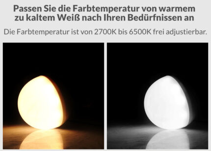 Mit ca. 4000 Kelvin erhalten Sie eine neutralweisse Lichtfarbe, bei der Sie alltägliche Dinge, wie lesen oder arbeiten können. Kaltweißes Licht erhalten Sie bei einer Farbtemperatur um 6500 Kelvin. Diese Dual White Lampe ist ein Klassiker für alle Räume. Ob Wohnzimmer, Schlafzimmer, Flur oder Küche.