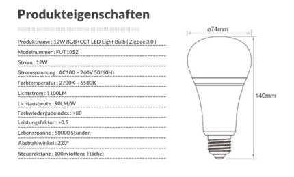 | Produktname: | RGB+CCT-LED-Birne (Zigbee 3.0) |