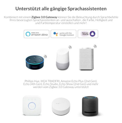 * Für die Sprachsteuerung und die Steuerung per App wird ein Zigbee Gateway von MiBoxer wie ZB-BOX2 ( bei uns im Shop erhältlich ) benötigt.