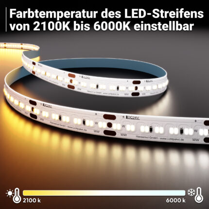CCT-LED-Streifen. Dieser innovative Streifen vereint Warm- und Kaltweiß und