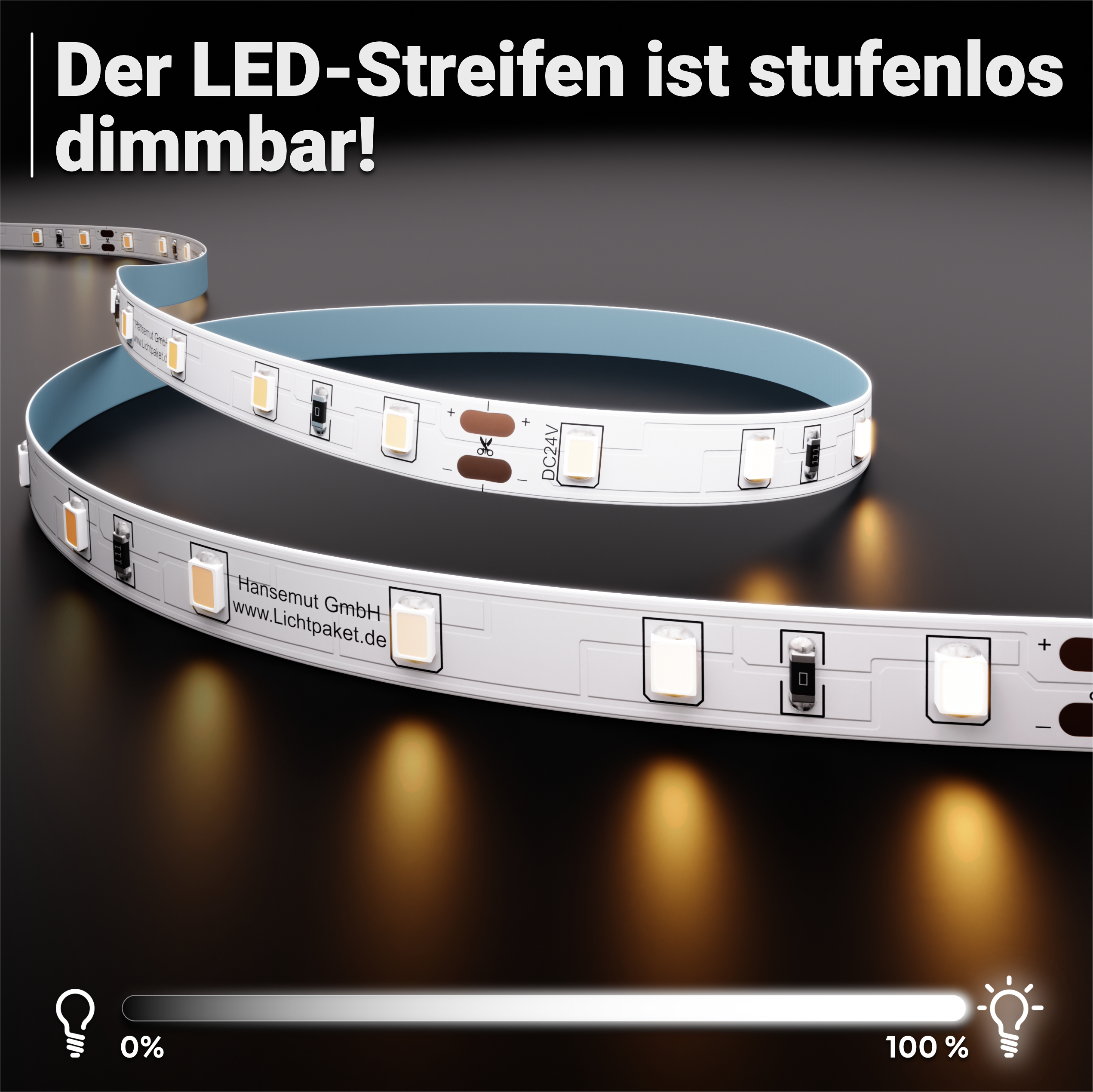 Farbtemperatur von 2700 Kelvin erzeugt. Mit 60 LEDs pro Meter bietet er eine gleichmäßige und kräftige