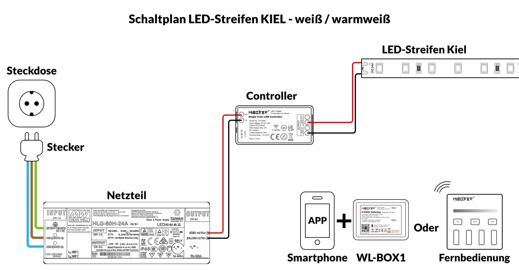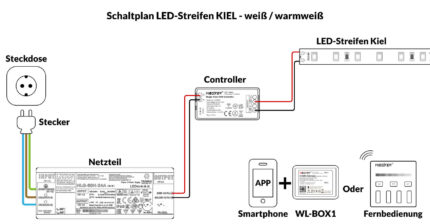 | Anschlussmöglichkeiten: | An beiden Enden des LED-Streifens |