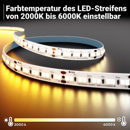 CCT-LED-Streifen. Dieser innovative Streifen vereint Warm- und Kaltweiß und