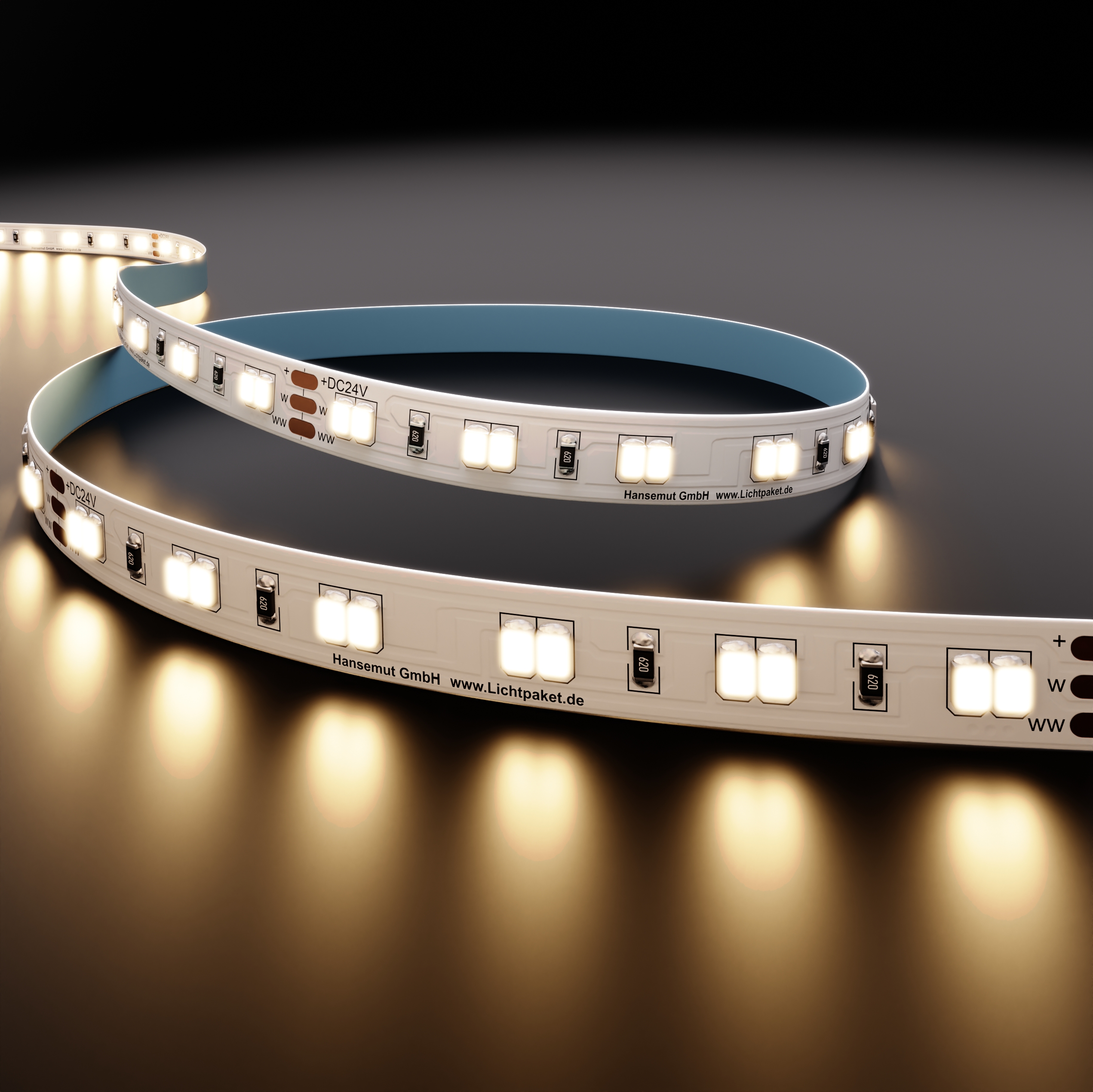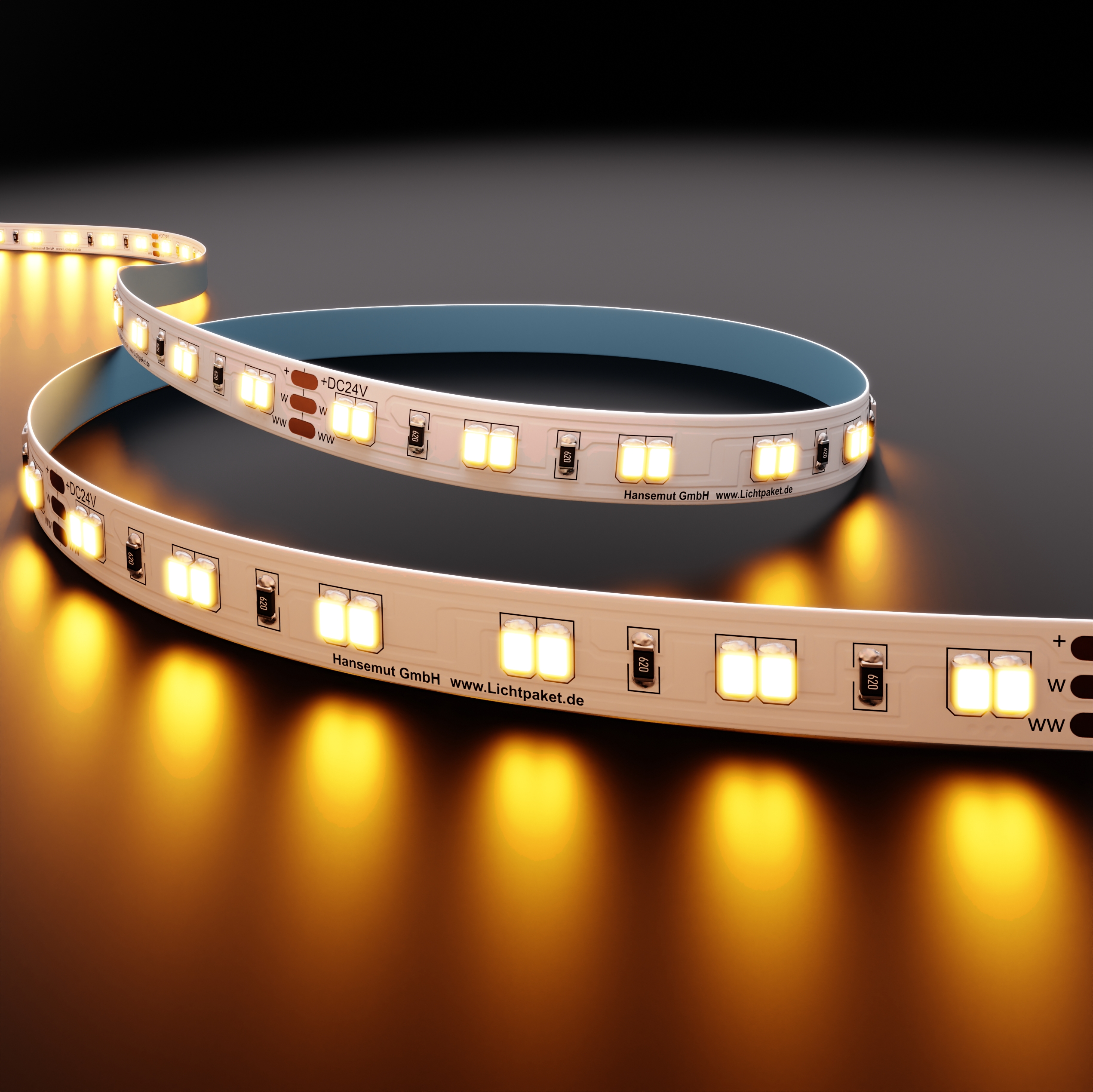 CCT-LED-Streifen. Dieser innovative Streifen vereint Warm- und Kaltweiß und