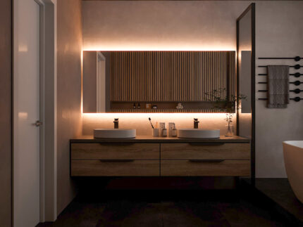 Der tägliche Blick in den Spiegel wird mit sanfter Beleuchtung zum besonderen Moment. LED-Streifen sorgen für stimmungsvolles Licht – ob hinter dem Spiegel, an Nischen oder unter den Schränken. Kleine Details, große Wirkung: Machen Sie Ihr Badezimmer zu einem echten Wohlfühlort.