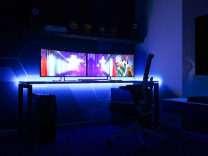 Gaming beginnt mit dem richtigen Setup – und das passende Licht gehört dazu. Unser Lichtpaket für den Schreibtisch sorgt für klare Sicht und starke Atmosphäre. Ob farbwechselnd, dimmbar oder individuell gesättigt – Sie bestimmen, wie Ihr Gaming-Tisch leuchtet. Alles, was Sie brauchen, ist dabei.