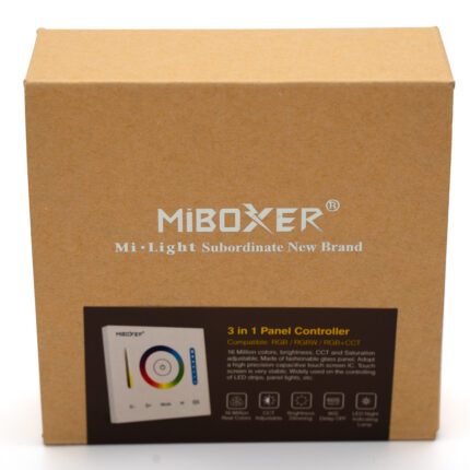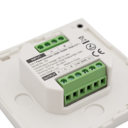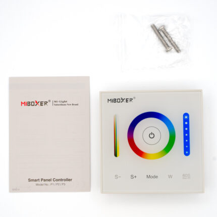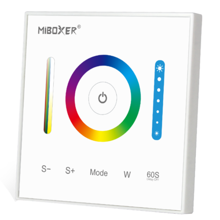 Die intelligenten Panel-Controller von Mi-Light sind wahre High-End Controller mit TouchScreen. Das TouchScreen ist besonders Kratzfest. Das Panel für RGB(W)-LED-Streifen hat folgende Funktionen: Farbwechsel, Dimmer, Wechsel der Farbtemperaturen, Ein/Aus Schalter und Änderung der Farbsättigkeit. (Der LED-Streifen wird hier direkt mit dem Panel verbunden. Ein separater Controller ist nicht notwendig.)