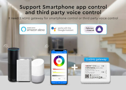 Die 12 Watt Lampe hat 1000 Lumen und ist eher für eine mittlere bis kräftige Beleuchtung geeignet. Der Abstrahlwinkel beträgt 60°. Jeder Strahler dient nicht nur als Signalempfänger, sondern auch als Signalgeber. Damit können auch größere Entfernungen überbrückt werden. Die Steuerung erfolgt je nach Bedarf per App, Fernbedienung oder Sprachsteuerung. Die Funkreichweite beträgt bis zu 30m.
