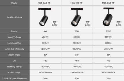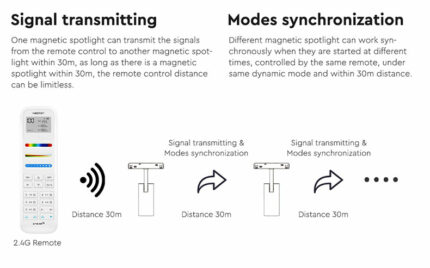 Diese Strahler funktionieren für das Schienensystem AMMR20S15B, AMMR20P15B, AMMR20F15B. Die CCT Strahler halten magnetisch in dem Schienensystem und können seitlich bewegt werden. Die Farbtemperatur der Lampen kann die Weißtöne zwischen 2700 – 6500 Kelvin wechseln. Somit ist es möglich, das Licht von warmweiß bis kaltweiß zu regulieren. Wer buntes Licht bevorzugt, kann seine Wunschfarbe auswählen. Es stehen bis zu 16 Millionen Farben zur Verfügung.