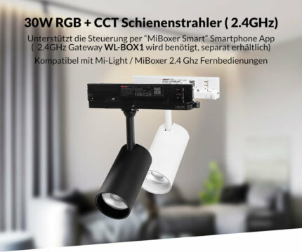 Die 30 Watt Lampe hat 1800 Lumen und ist eher für eine mittlere bis kräftige Beleuchtung geeignet. Der Abstrahlwinkel beträgt 36°. Jeder Strahler dient nicht nur als Signalempfänger, sondern auch als Signalgeber. Damit können auch größere Entfernungen überbrückt werden. Die Steuerung erfolgt je nach Bedarf per App, Fernbedienung oder Sprachsteuerung. Die Funkreichweite beträgt bis zu 30m.